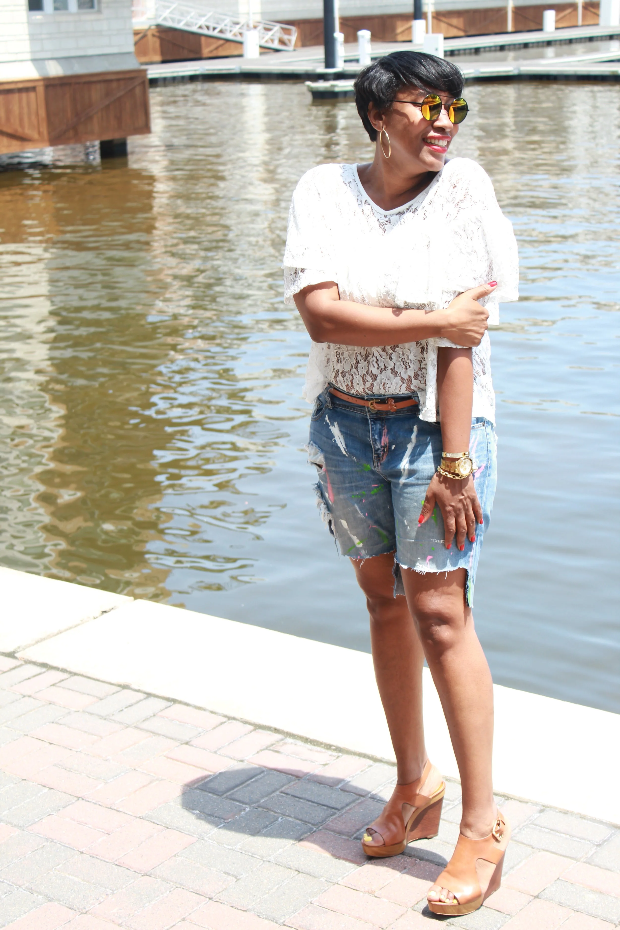 I literally outgrew my jeans. So my first thought was to paint them and make them unique. But guess what? I got smaller and smaller and just outgrew them. So my last resort was just to cut them into shorts.